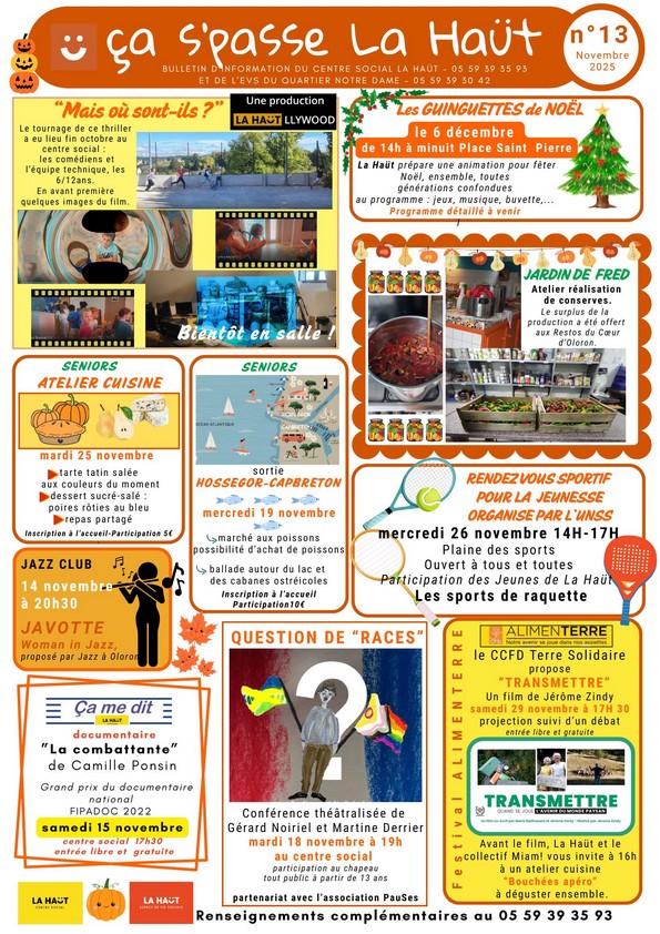 Plus de renseignements au centre social La Haüt auprès d’Emilie et Fabienne au 05.59.39.35.93 / 06.26.36.41.54